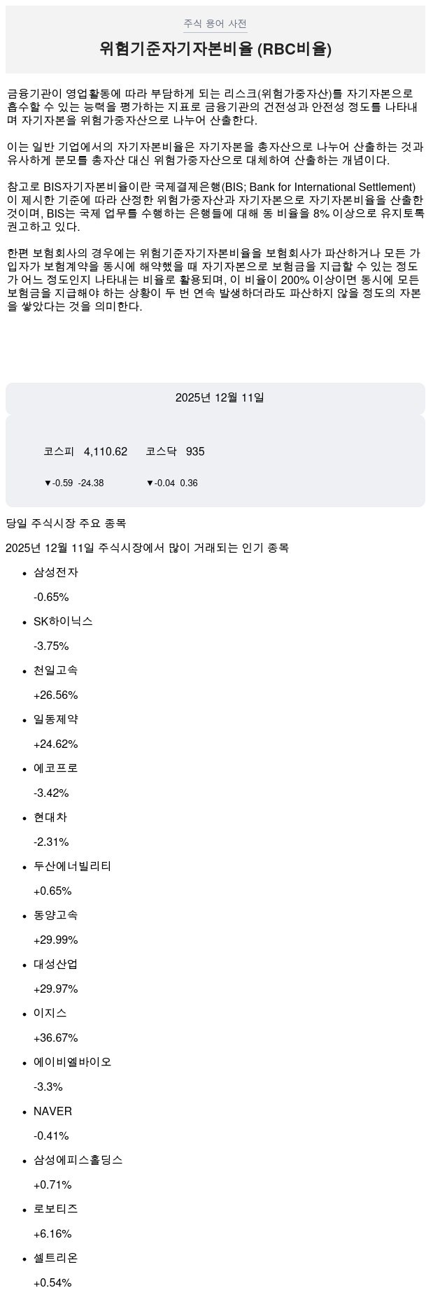 더보기위험기준자기자본비율 (RBC비율) 용어 설명과 2025년12월11일 주식 추세