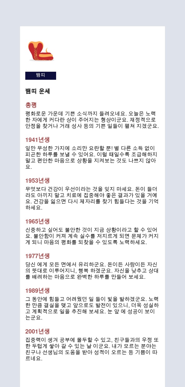 더보기오늘의운세 띠별특징 운세총평 – 2026년 03월 05일