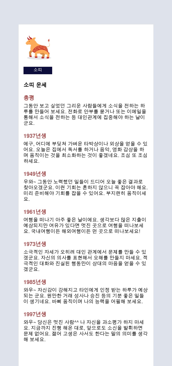 더보기오늘의운세 띠별특징 운세총평 – 2026년 03월 07일