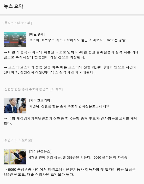 하루 동안의 핵심 이슈를 경제와 사회 이슈로 집약한 글입니다....