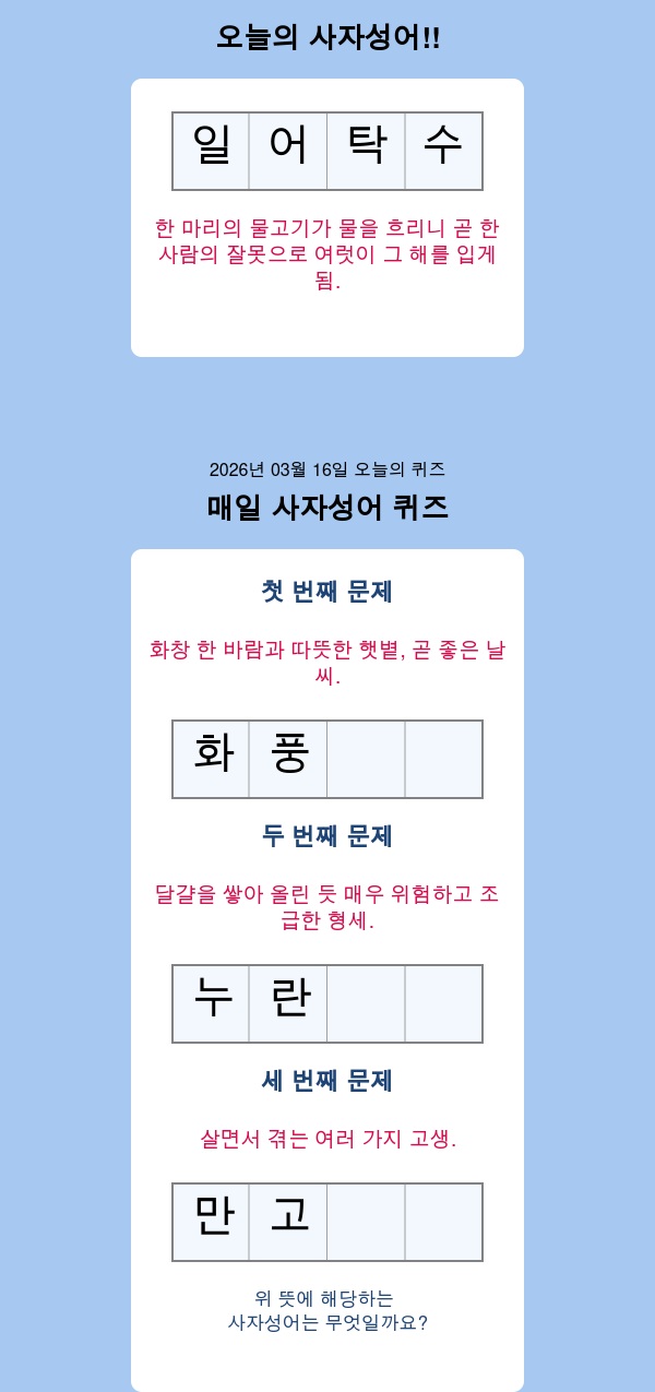더보기남가일몽 – 사자성어뜻 공부 문제, 매일 새로운 사자성어: 지혜의 문장을 배워가다