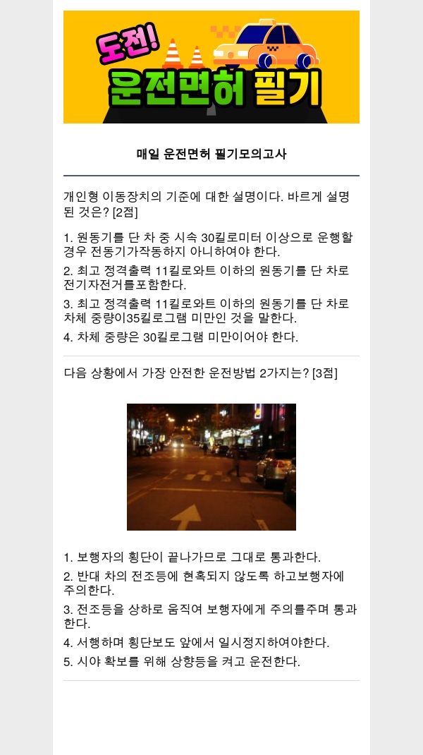 오늘의 운전면허 필기 공부 퀴즈 모의고사를 공개합니다.