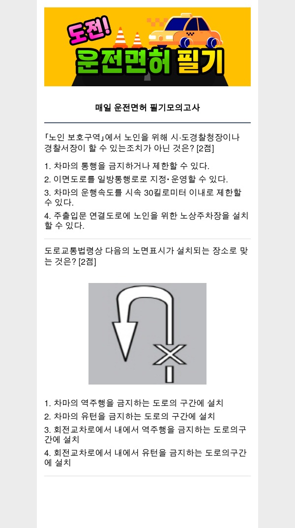 운전면허증 필기시험을 도전하는 사람들에게 모의고사 문제를