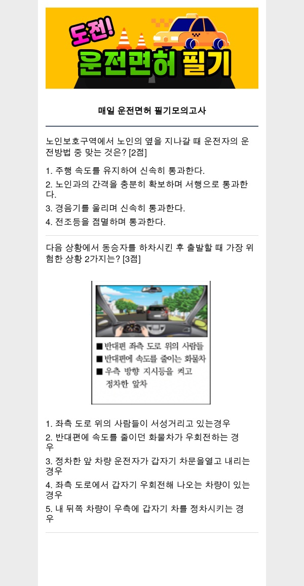 오늘의 운전면허 필기 공부 퀴즈 모의고사를 공개합니다.