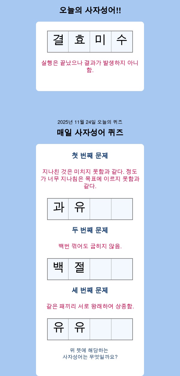 오늘의 사자성어 공부 퀴즈 오늘의 문제를 공개합니다.