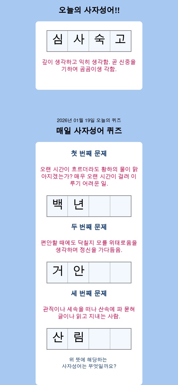 오늘의 사자성어 공부 퀴즈 오늘의 문제를 공개합니다.