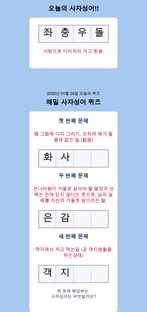 오늘의 사자성어 공부 퀴즈 오늘의 문제를 공개합니다.