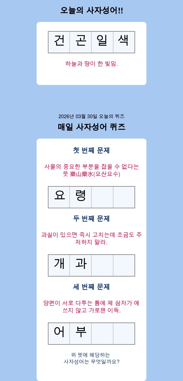 오늘의 사자성어 공부 퀴즈 오늘의 문제를 공개합니다.