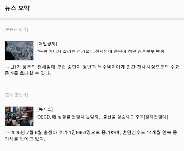 → LH가 정부의 전세임대 모집 중단이 청년과 무주택자에게 민간 전세시장으로의 수요 증가를 초래할 수 있다.