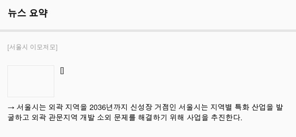 → 서울시는 외곽 지역을 2036년까지 신성장 거점인 서울시는 지역별 특화 산업을 발굴하고 외곽 관문지역 개발 소외 문제를 해결하기 위해 사업을 추진한다.