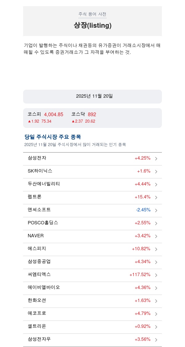 주식 시장에서 빈번히 언급되는 용어들을 쉽게 설명하고, 오늘 높은 거래량을 기록한 인기종목과 함께 오늘의 추천주를 소개합니다. 주식 용어들을 간단한 언어로 풀어내어 초보자들도 쉽게 이해할 수 있도록 하며, 2025년11월20일의 주식 시장에서 화제가 된 종목들을 눈여겨 볼 수 있도록 안내합니다.