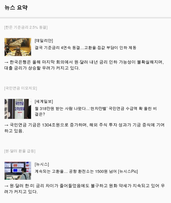 → 한국은행은 올해 마지막 회의에서 원·달러 내년 금리 인하 가능성이 불확실해지며, 대출 금리가 상승할 우려가 커지고 있다.