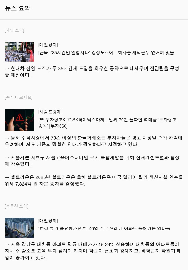 하루 동안 벌어진 주요 사건을 경제와 사회 이슈 중심으로 간략하게 정리한 글입니다. 정보를 빠르게 습득하여 시간을 절약하세요.