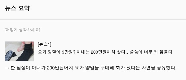 → 한 남성이 아내가 200만원어치 요가 양말을 구매해 화가 났다는 사연을 공유했다.