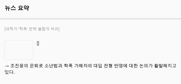 → 조진웅의 은퇴로 소년범과 학폭 가해자의 대입 전형 반영에 대한 논의가 활발해지고 있다.
