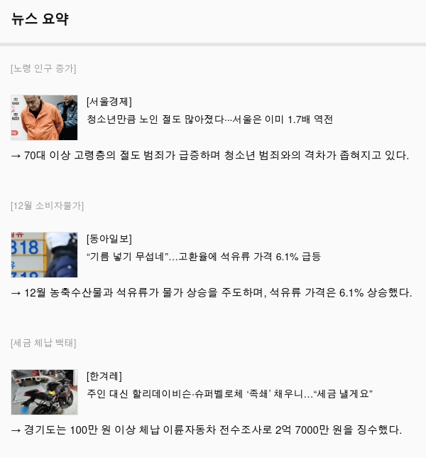 금일의 주요 사건을 경제와 사회 이슈 중심으로 요약한 내용입니다. 간편하게 정보를 확인하며 하루를 시작하거나 정리하세요.
