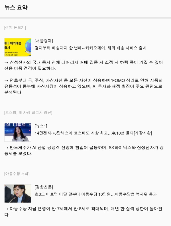 하루의 핵심 이슈를 경제와 사회 이슈로 정리한 글입니다. 간단하게 확인하면서 하루를 시작하거나 마무리하세요.