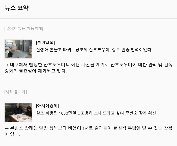 → 대구에서 발생한 산후도우미의 이번 사건을 계기로 산후도우미에 대한 관리 및 감독 강화의 필요성이 제기되고 있다.
