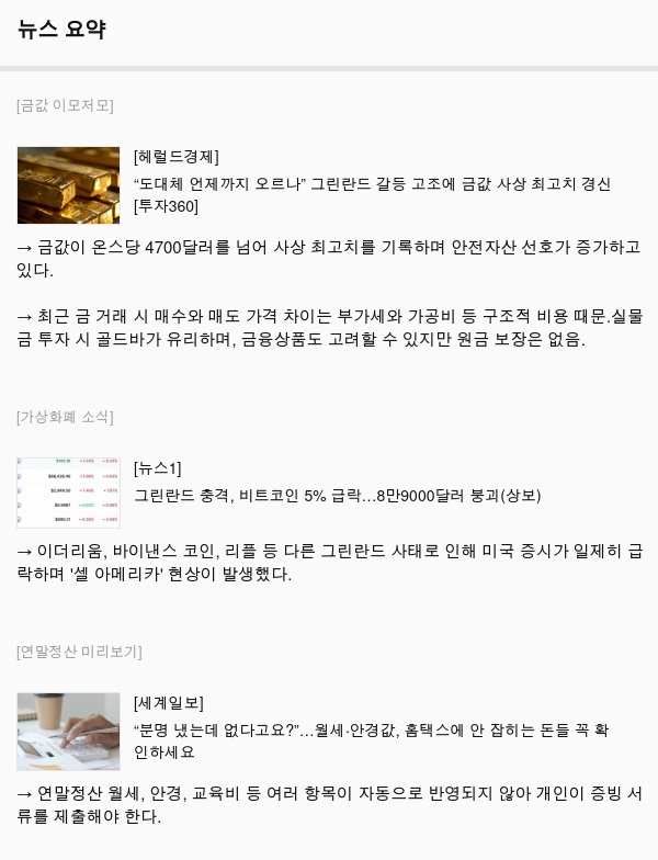 하루의 정리, 2026.01.21 경제,사회 이슈 확인. – [금값 이모저모]