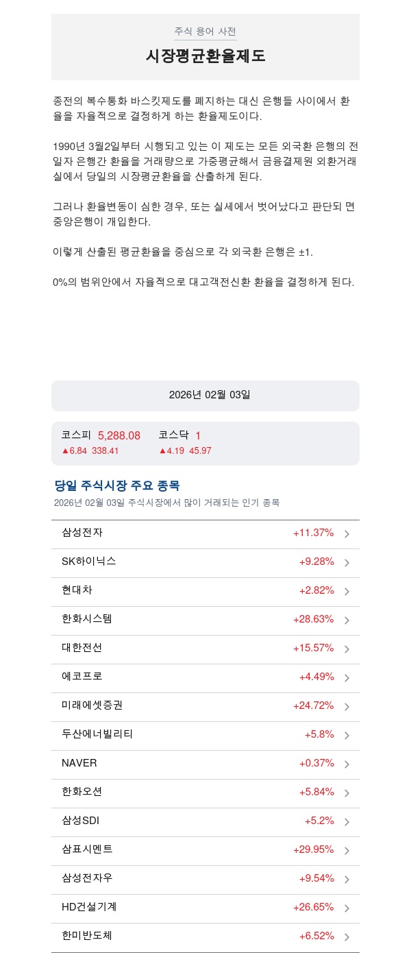 시장평균환율제도 용어 해설과 금일 주식 시장 분석