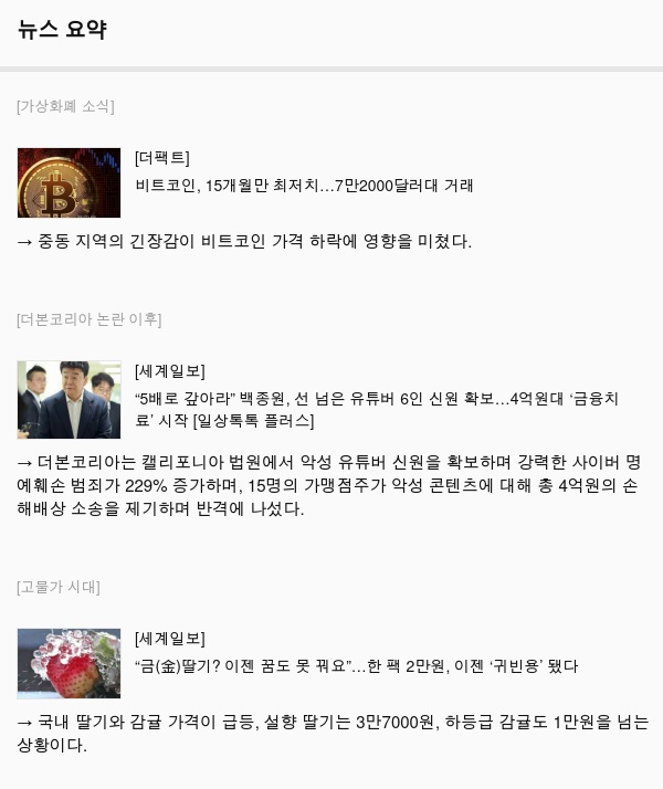 하루 동안 벌어진 주요 사건을 경제와 사회 이슈 중심으로 간략하게 정리한 글입니다. 정보를 빠르게 습득하여 시간을 절약하세요.