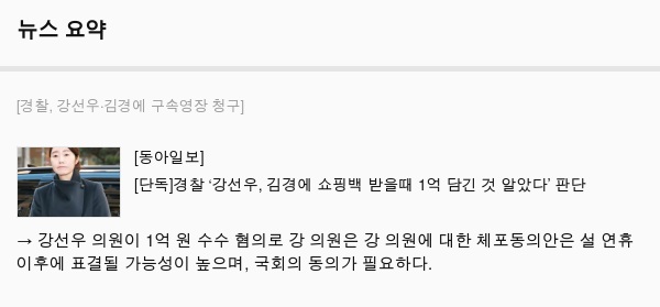 → 강선우 의원이 1억 원 수수 혐의로 강 의원은 강 의원에 대한 체포동의안은 설 연휴 이후에 표결될 가능성이 높으며, 국회의 동의가 필요하다.