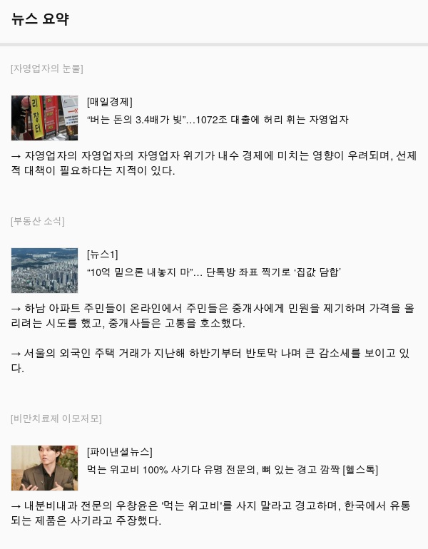 → 자영업자의 자영업자의 자영업자 위기가 내수 경제에 미치는 영향이 우려되며, 선제적 대책이 필요하다는 지적이 있다.