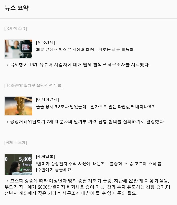 금일 발생한 핵심 이슈를 경제와 사회 이슈로 간략하게 정리한 내용입니다. 하루를 간편하게 시작하거나 마무리하세요.