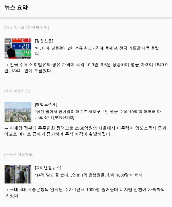 금일 발생한 핵심 이슈를 경제와 사회 이슈로 간략하게 정리한 내용입니다. 하루를 간편하게 시작하거나 마무리하세요.