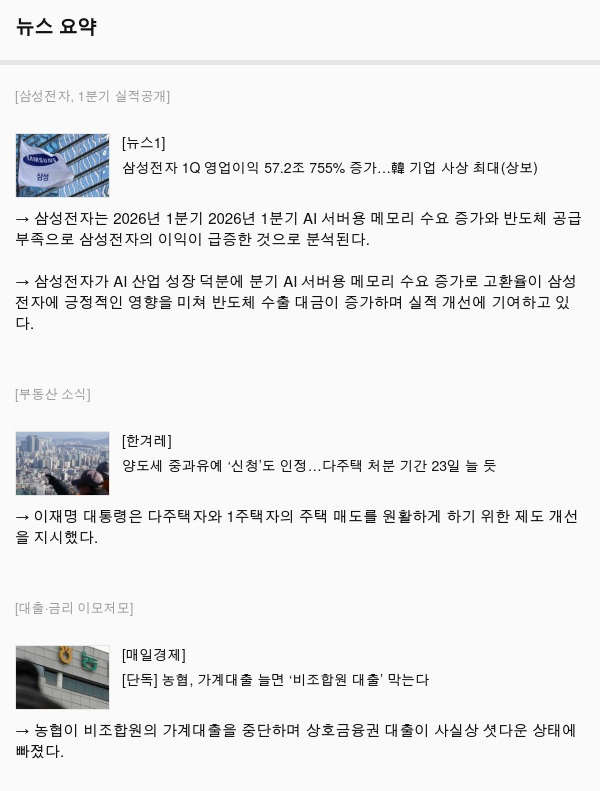 → 삼성전자는 2026년 1분기 2026년 1분기 AI 서버용 메모리 수요 증가와 반도체 공급 부족으로 삼성전자의 이익이 급증한 것으로 분석된다.