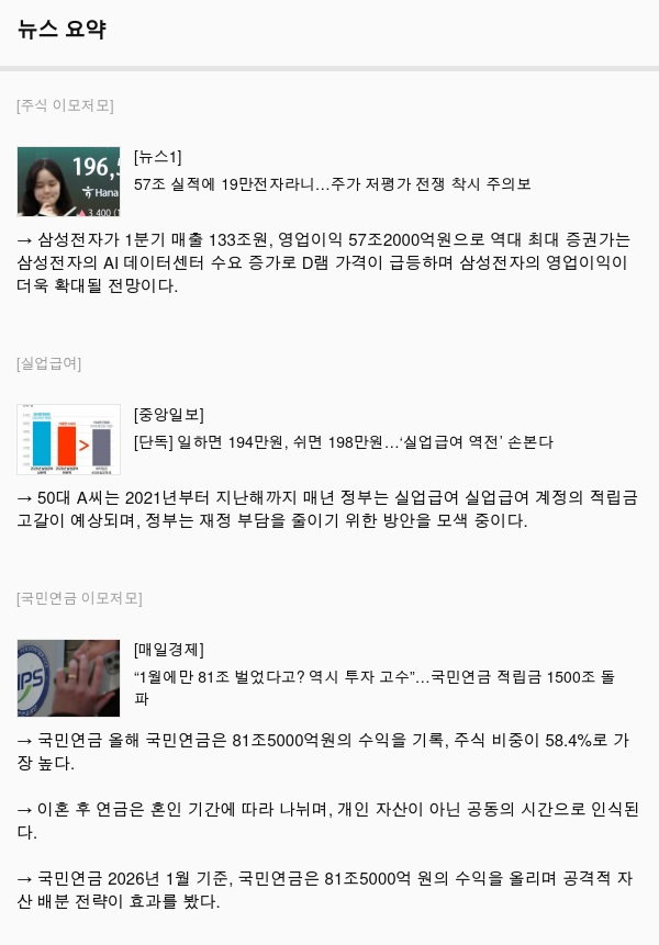 → 삼성전자가 1분기 매출 133조원, 영업이익 57조2000억원으로 역대 최대 증권가는 삼성전자의 AI 데이터센터 수요 증가로 D램 가격이 급등하며 삼성전자의 영업이익이 더욱 확대될 전망이다.