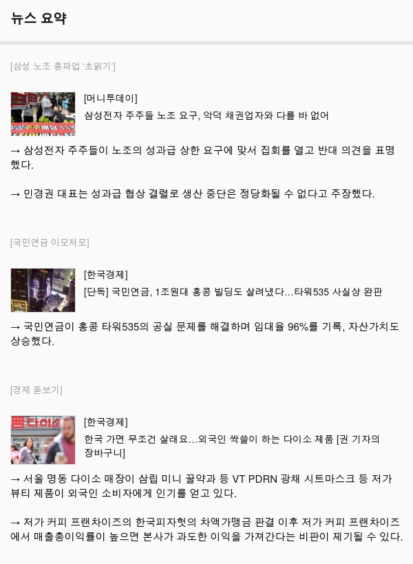 금일의 주요 사건을 경제와 사회 이슈 중심으로 요약한 내용입니다. 간편하게 정보를 확인하며 하루를 시작하거나 정리하세요.