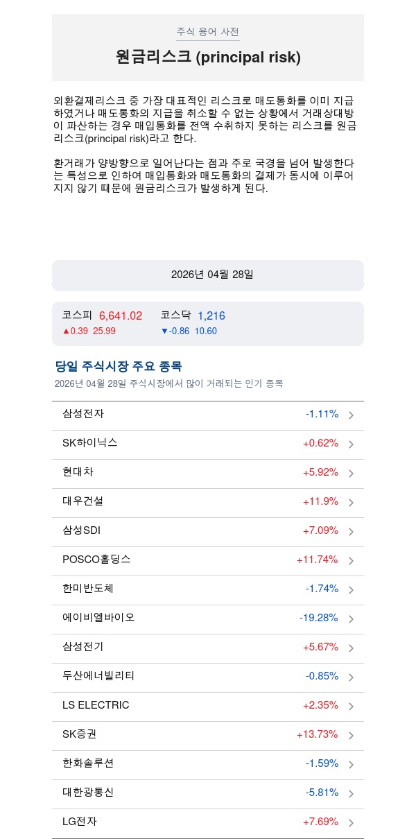 원금리스크 (principal risk) – 주식용어 해부와 2026년04월28일 인기종목 추천