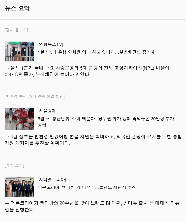 금일의 핵심을 경제와 사회의 시선으로 살펴본 내용입니다. 간단하게 정리된 정보로 손쉽게 소식을 살펴보세요.