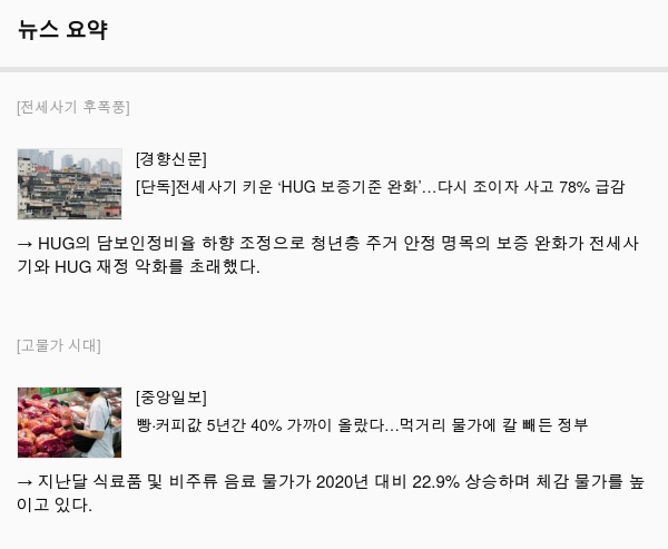 금일 발생한 핵심 이슈를 경제와 사회 이슈로 간략하게 정리한...