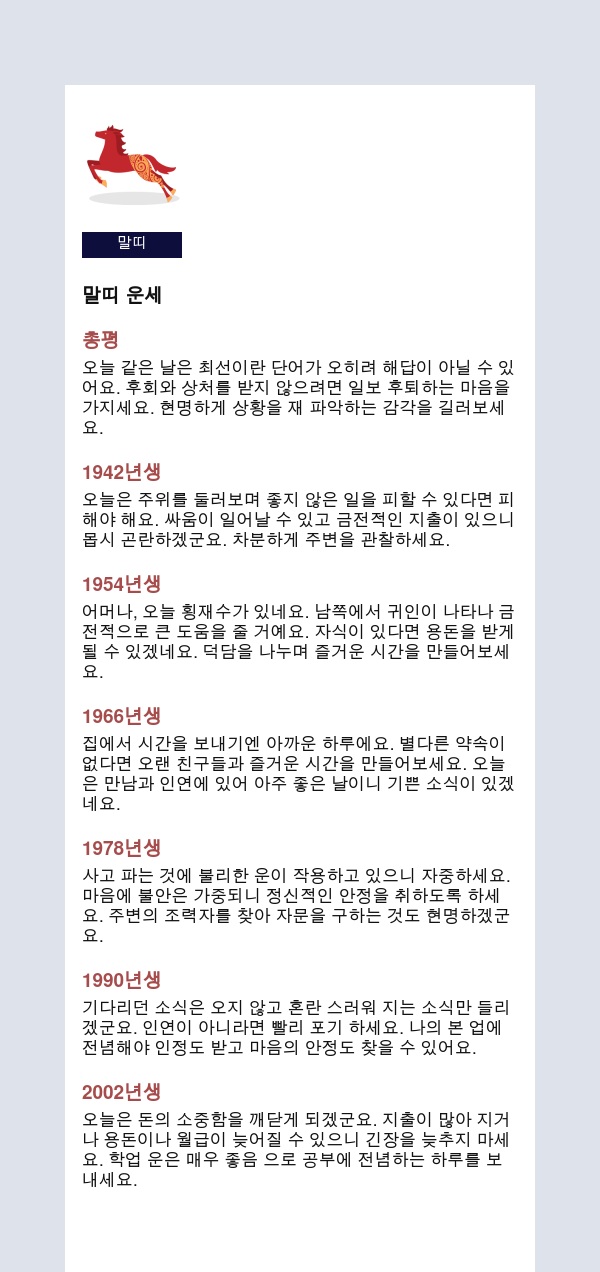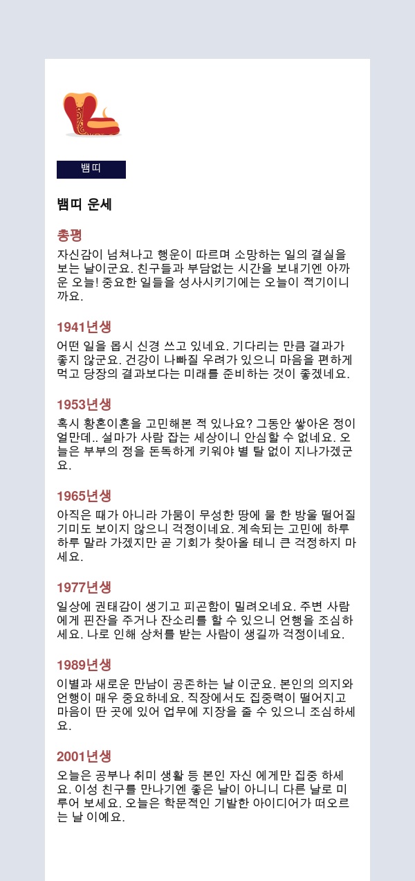더보기오늘의운세 띠별특징 운세총평 – 2025년 10월 01일