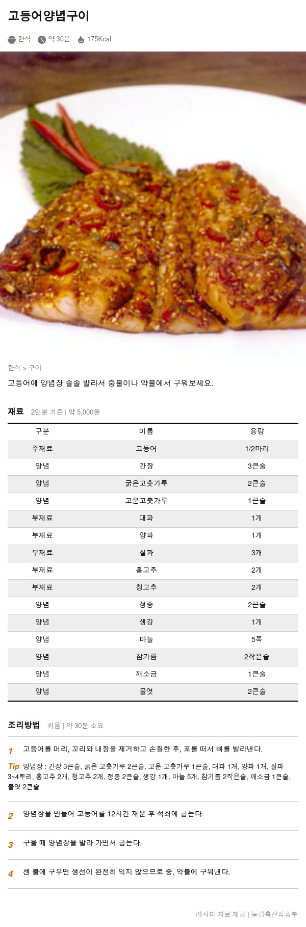 2양념장을 만들어 고등어를 12시간 재운 후 석쇠에 굽는다.