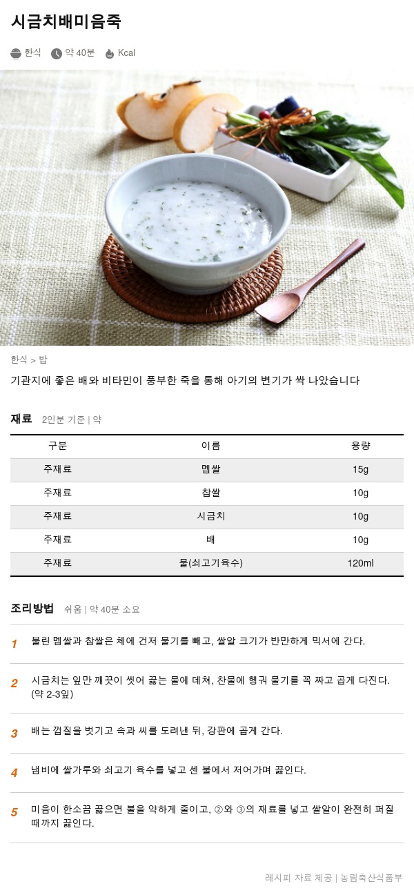 | 주재료 | 물(쇠고기육수) | 120ml |