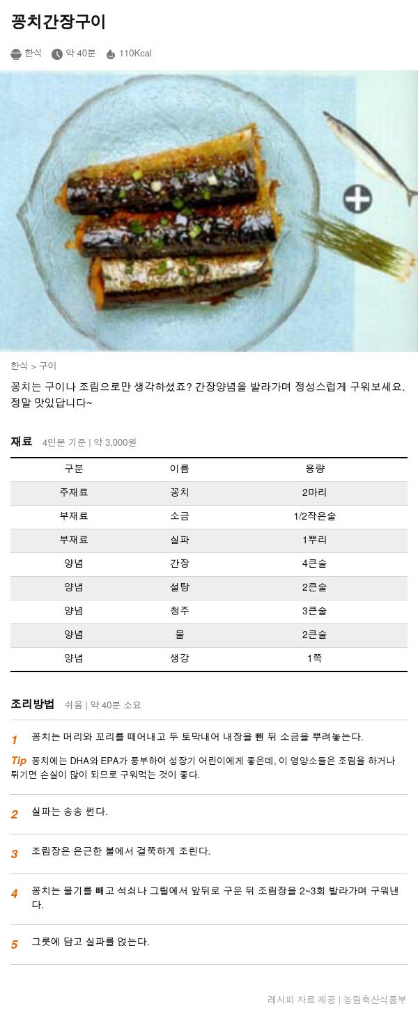 Tip꽁치에는 DHA와 EPA가 풍부하여 성장기 어린이에게 좋은데, 이 영양소들은 조림을 하거나 튀기면 손실이 많이 되므로 구워먹는 것이 좋다.