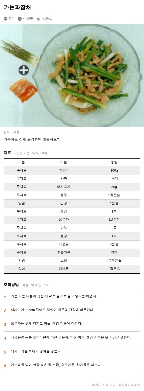 | 주재료 | 가는파 | 100g |