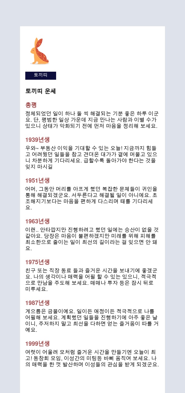 내 인생을 미리 보는 신통한 띠별운세를 공유해 드립니다.