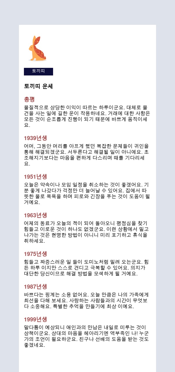 내 인생을 미리 보는 신통한 띠별운세를 공유해 드립니다.