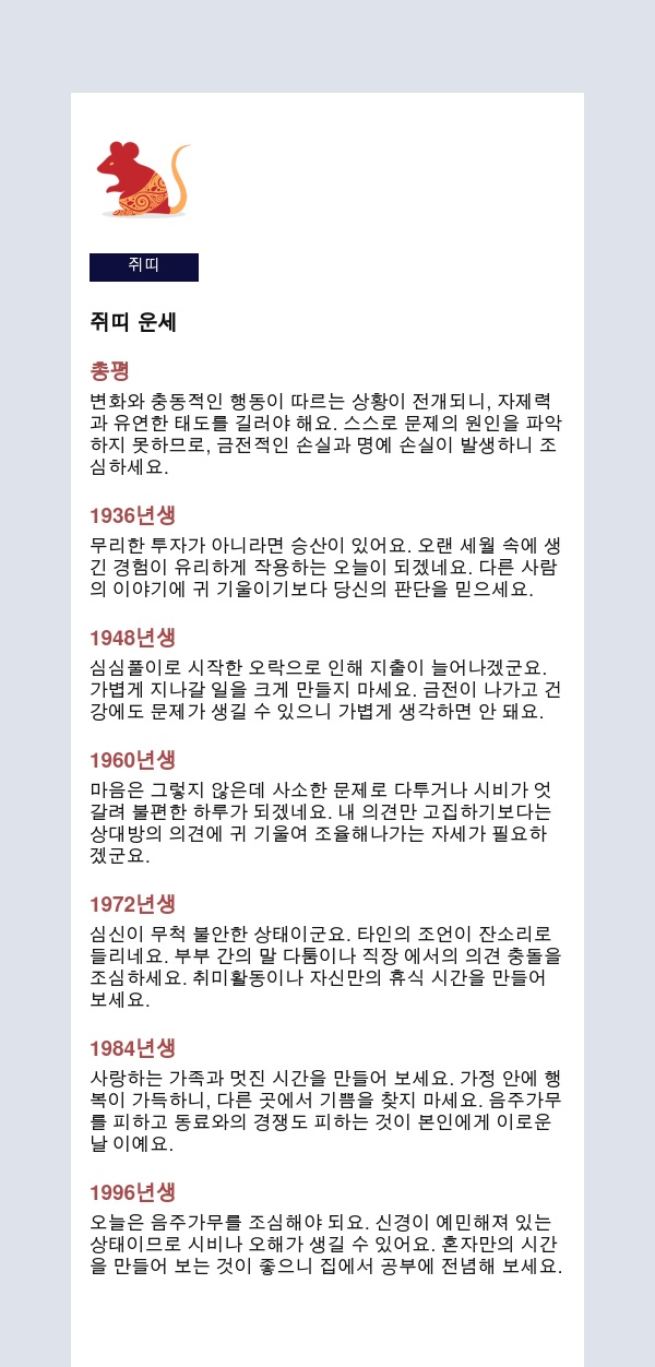 내 인생을 미리 보는 신통한 띠별운세를 공유해 드립니다.