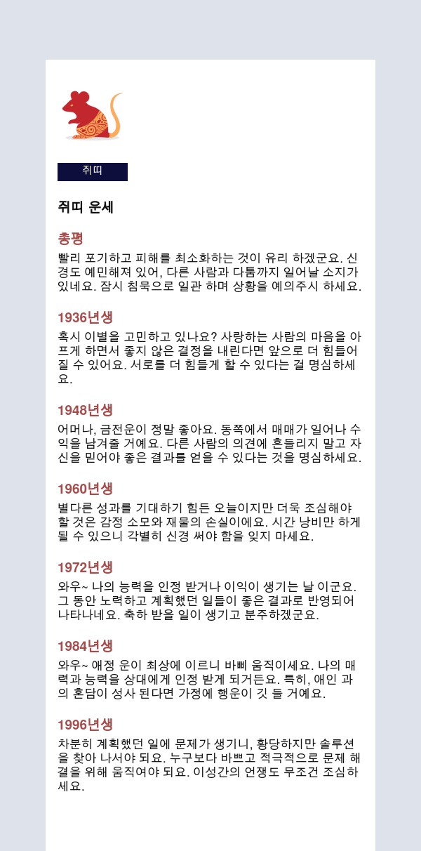 내 인생을 미리 보는 신통한 띠별운세를 공유해 드립니다.
