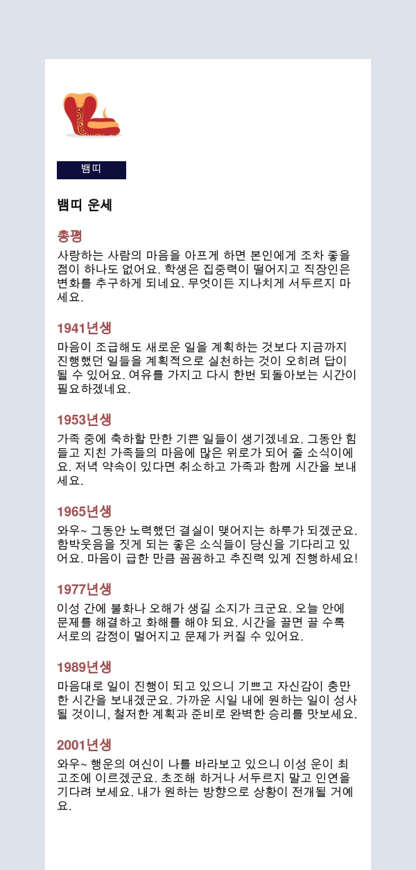 내 인생을 미리 보는 신통한 띠별운세를 공유해 드립니다.