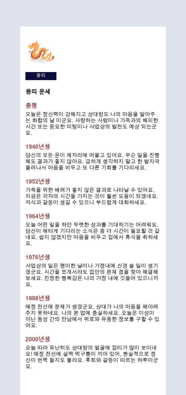 재미로 보는 운세 당신의 고민을 덜어 드릴게요.