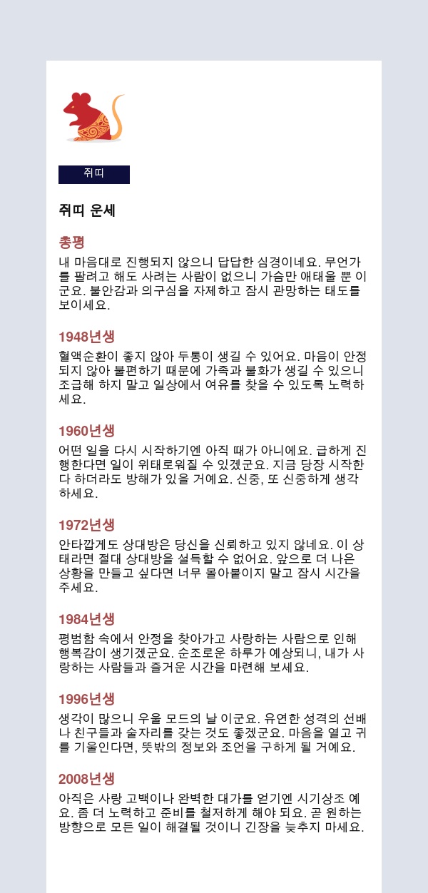 내 인생을 미리 보는 신통한 띠별운세를 공유해 드립니다.