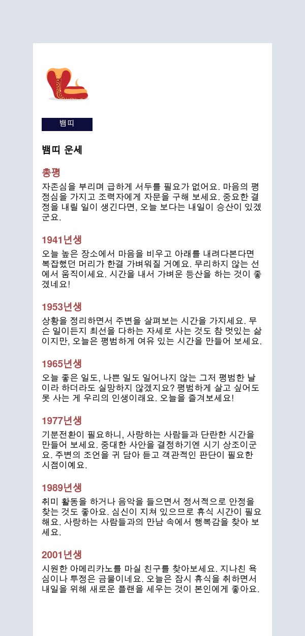 내 인생을 미리 보는 신통한 띠별운세를 공유해 드립니다.