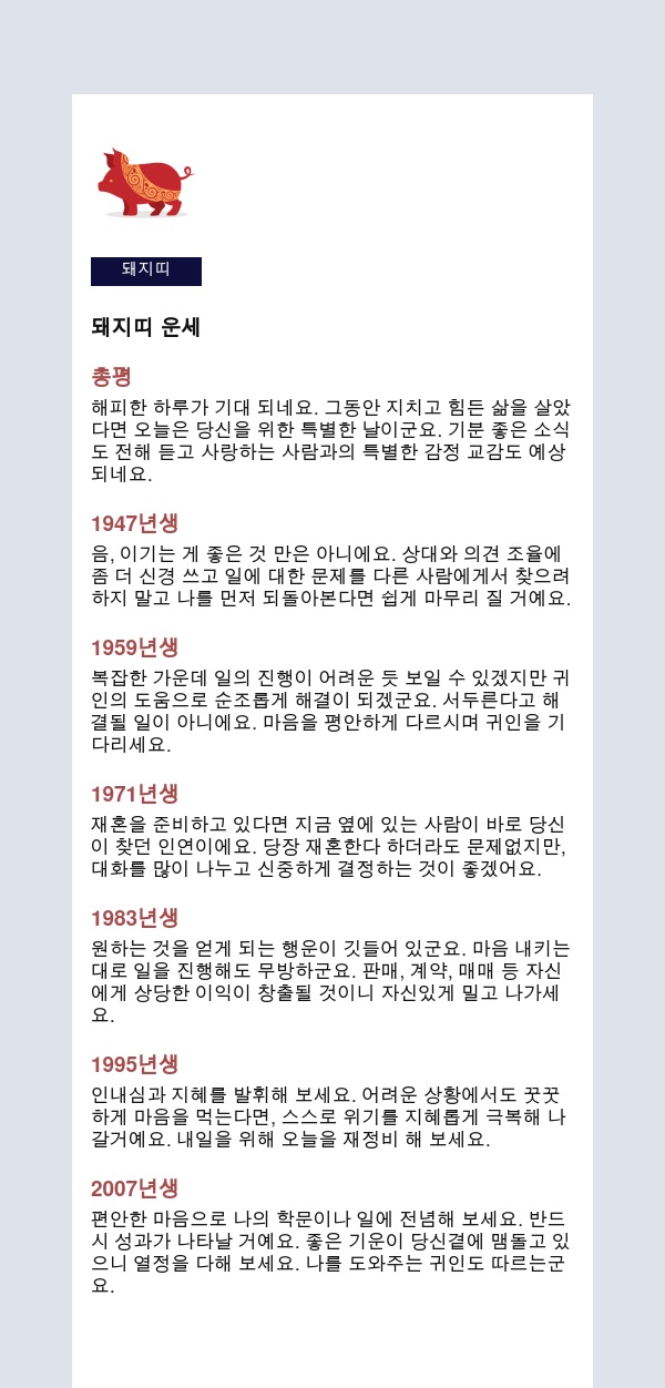 내 인생을 미리 보는 신통한 띠별운세를 공유해 드립니다.