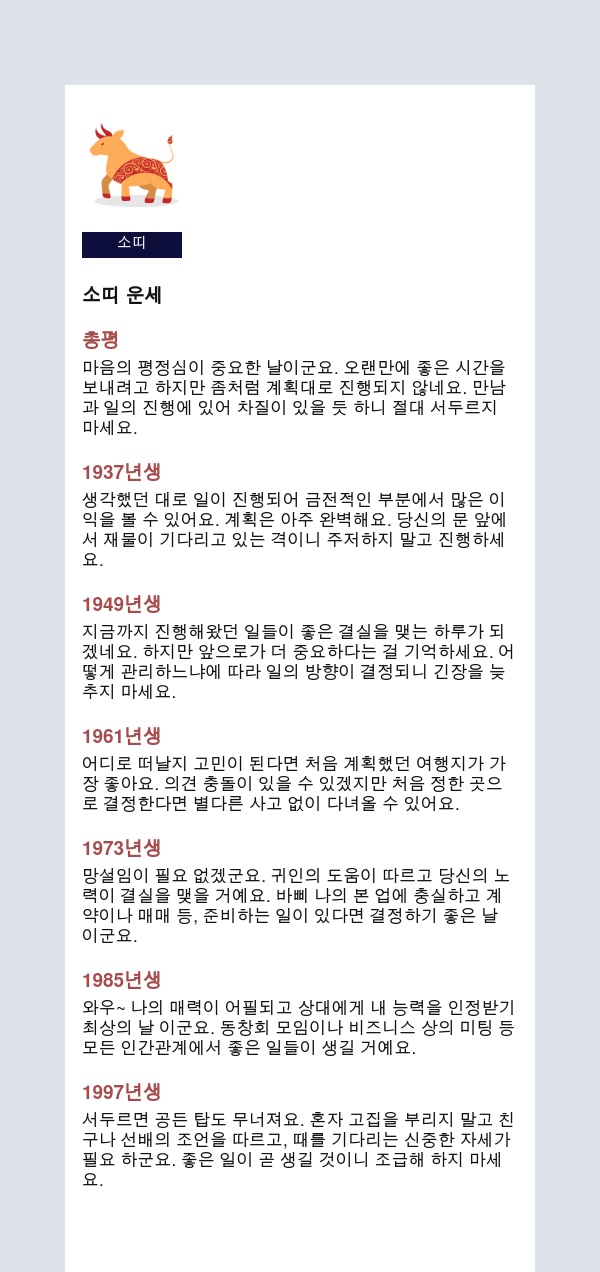 내 인생을 미리 보는 신통한 띠별운세를 공유해 드립니다.
